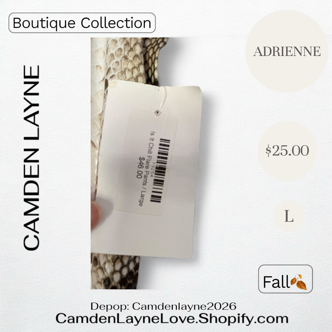 - Material: Typically made from a stretchy, form-fitting fabric for comfort. Some Adrienne flare pants are also listed with rayon fabric.