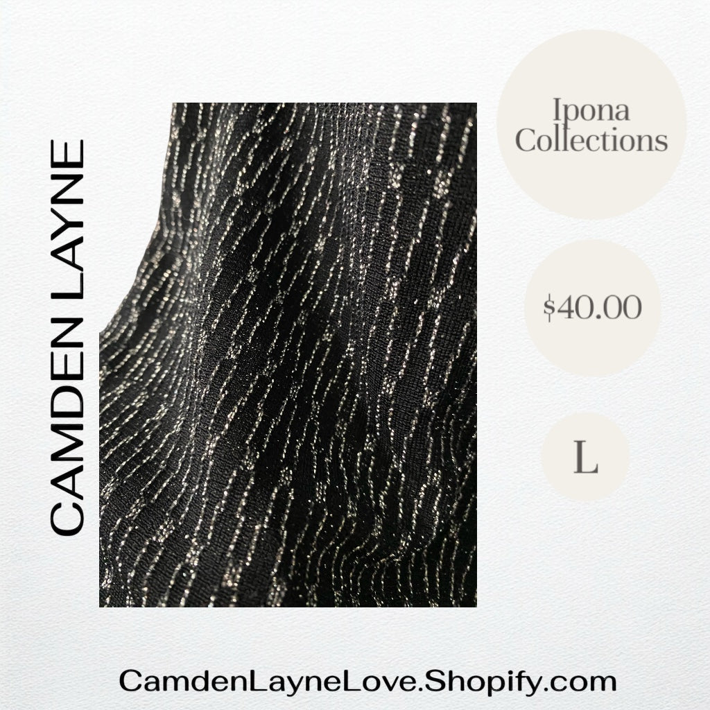 - Color & Texture: The dress is predominantly black, featuring a shimmering or sparkly texture with metallic thread in its weave.