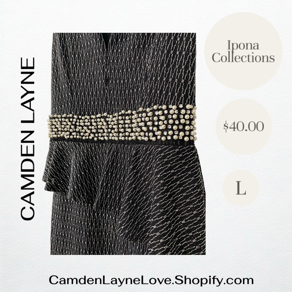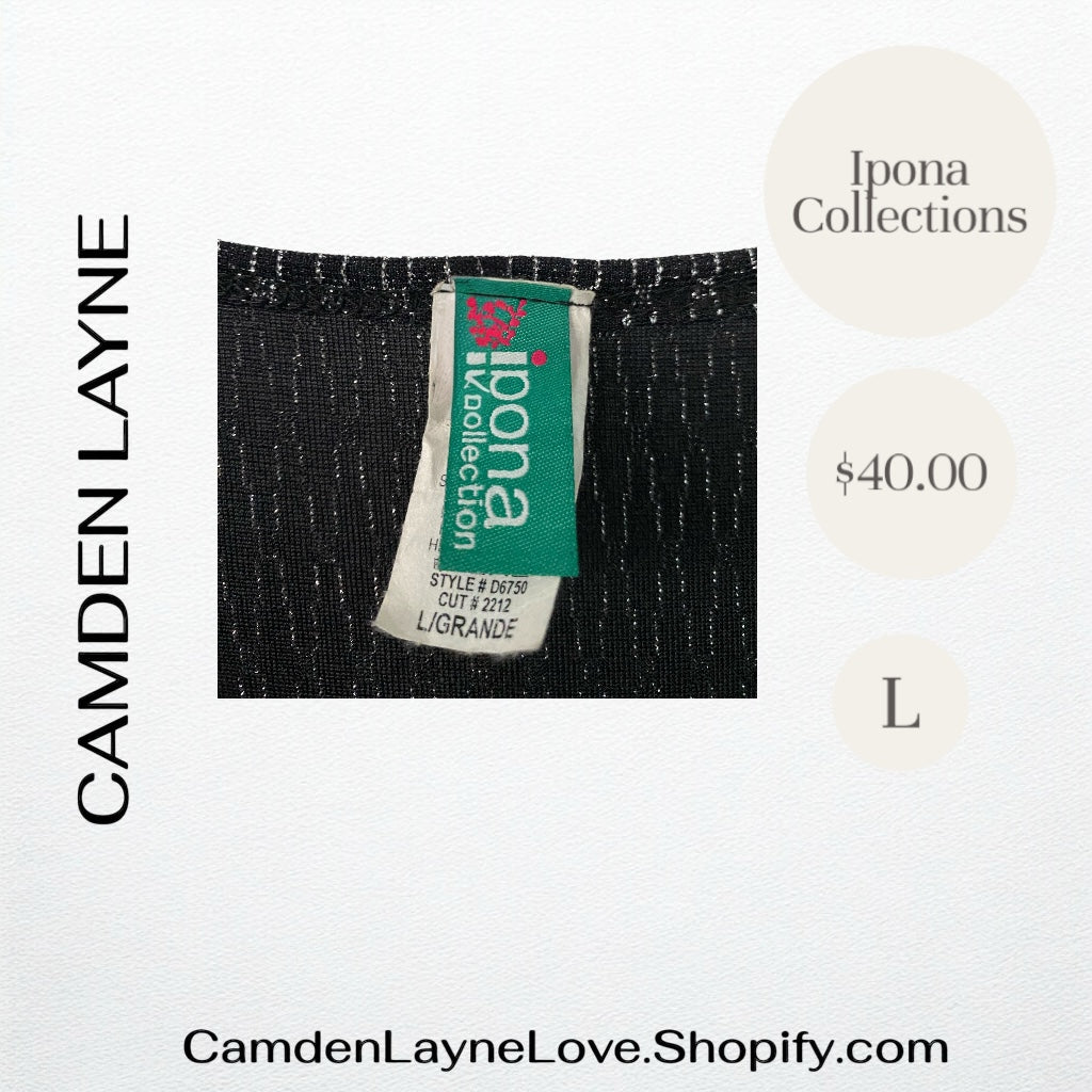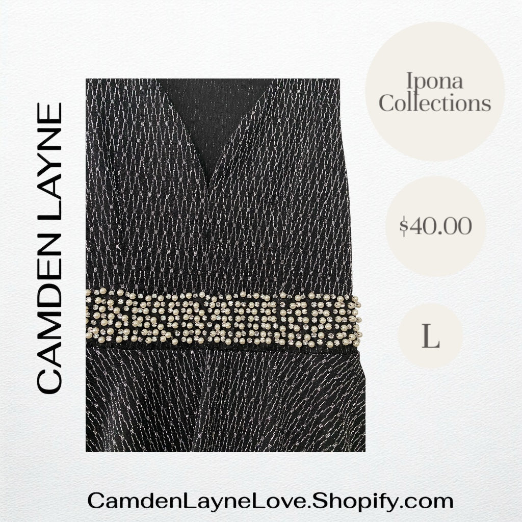 This "Ipona Collections" dress, available from Camden Layne, is a striking black dress with notable features:
