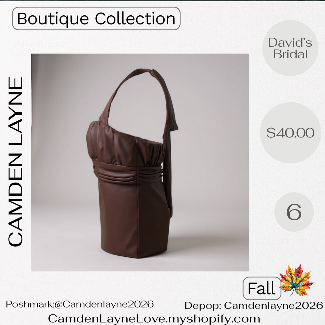 - Color & Fabric: The dress is a rich brown, possibly a "chocolate" or "espresso" shade, suggesting a smooth, potentially satin-like fabric given the way it drapes.
