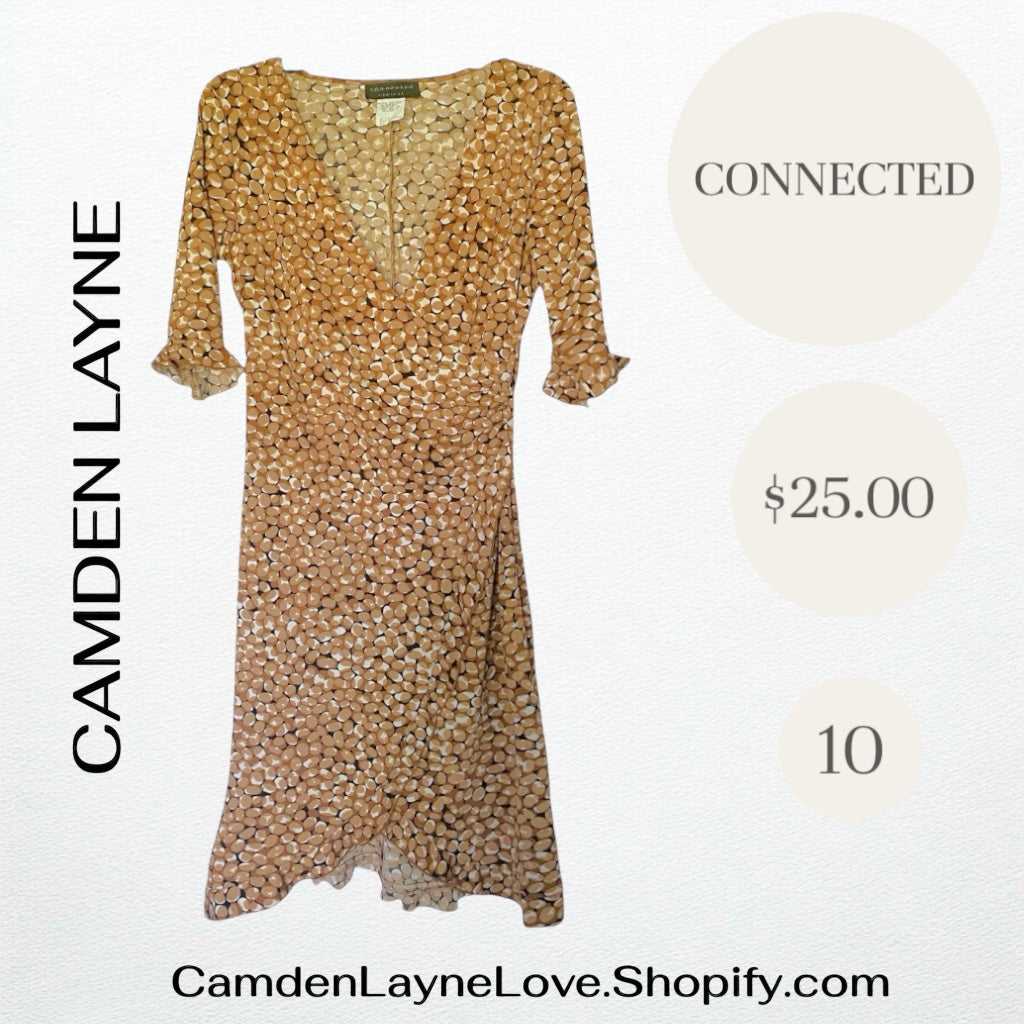 - Overall Impression: The combination of the warm color, unique pattern, and classic wrap style makes this Camden Layne dress a versatile piece, suitable for various occasions, from casual outings to more dressed-up events.