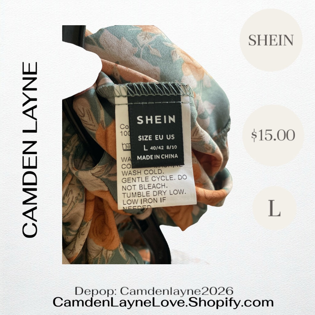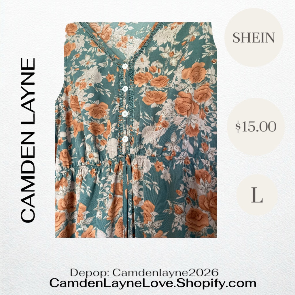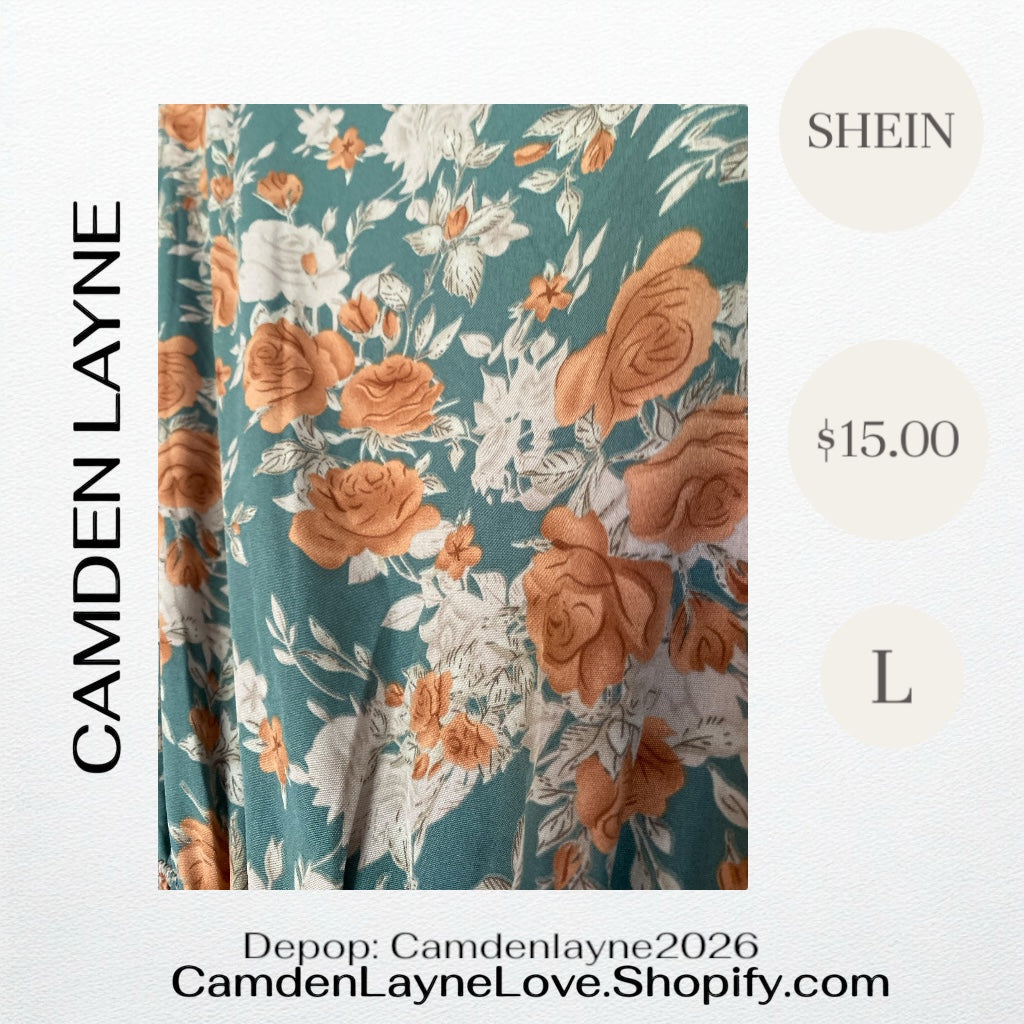 - Fabric & Pattern: The fabric appears lightweight and breathable, possibly cotton or a blend, making it suitable for warmer weather. The floral print is a prominent feature, featuring a mix of orange and possibly lighter yellow blossoms and green foliage, creating a visually appealing and summery aesthetic.