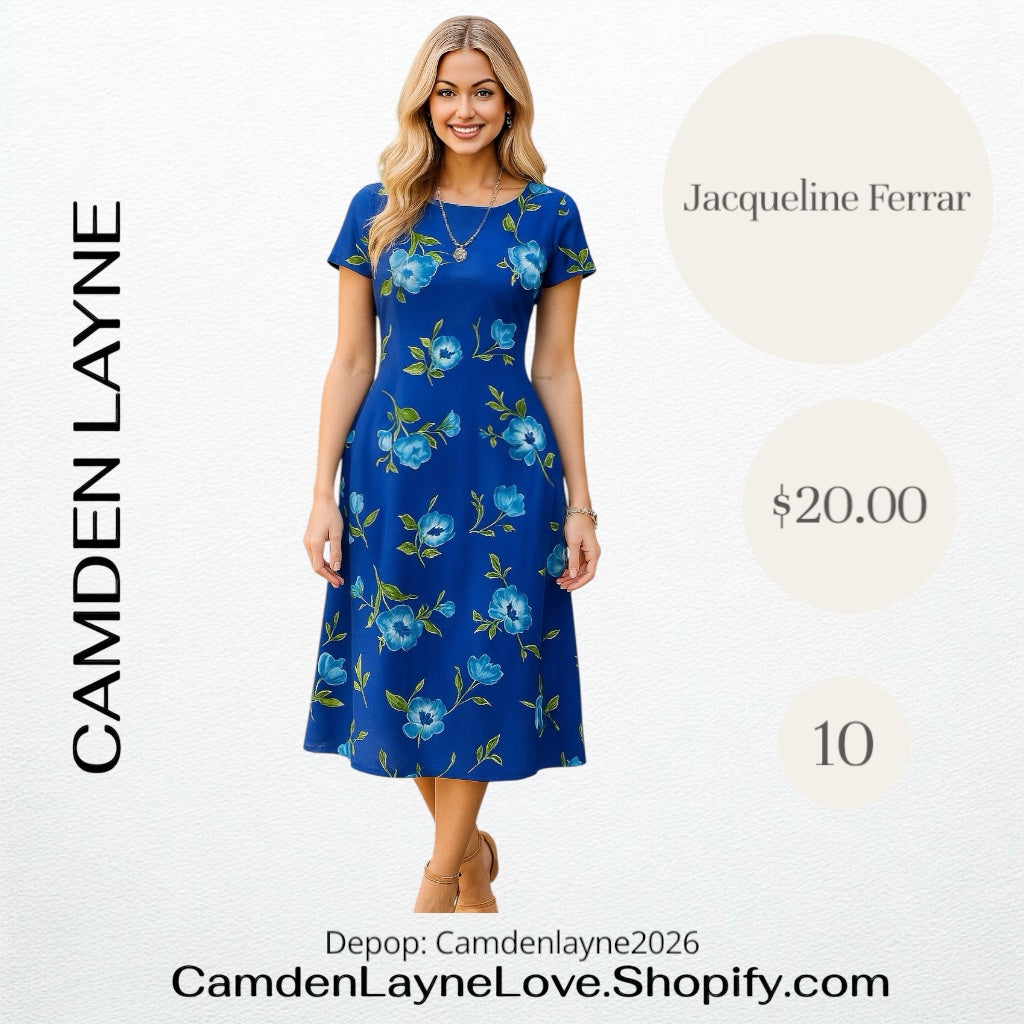 - Style & Silhouette: The dress has a short-sleeve design and a midi length, typically falling around the mid-calf, offering a graceful and elegant look. The silhouette appears to be a flattering A-line style with a defined waist, creating a comfortable yet polished fit.