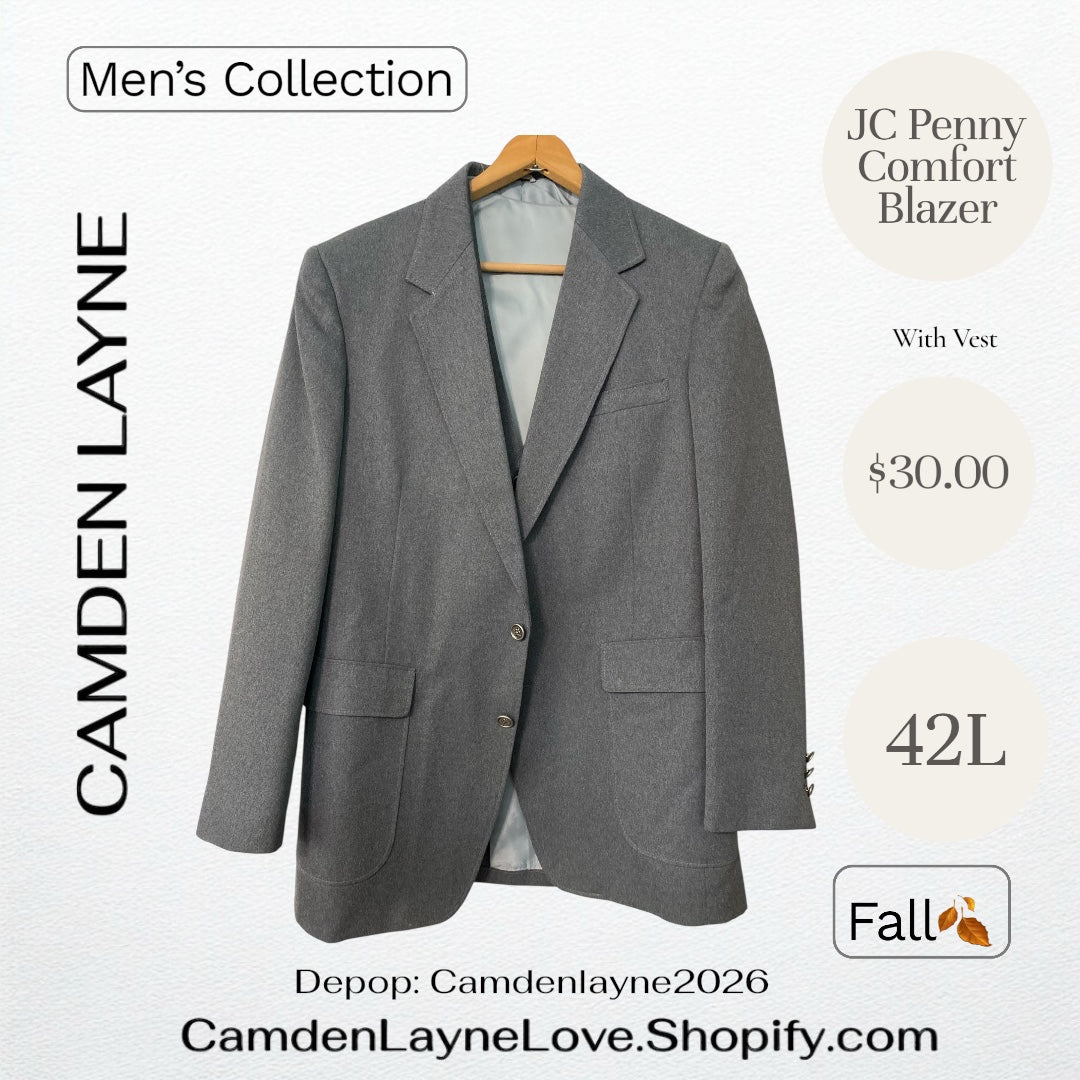 While the exact fabric composition for the specific blazer in your image is not explicitly stated in product descriptions for the Camden Layne line, JCPenney's "Comfort" branded blazers, both older and newer models from sub-brands like J. Ferrar and Stafford, frequently feature synthetic blends to offer flexibility and ease of movement. For example, J. Ferrar's Ultra Comfort line often uses a blend of polyester, viscose, and spandex.
