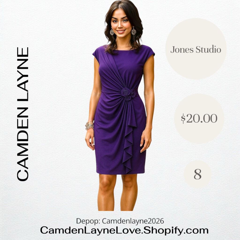- Color & Length: It's a vibrant purple (also described as dark lilac or plum), designed in a classic knee-length sheath silhouette, offering a polished and versatile look.