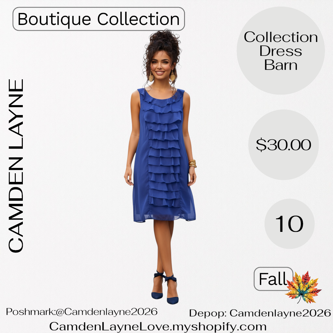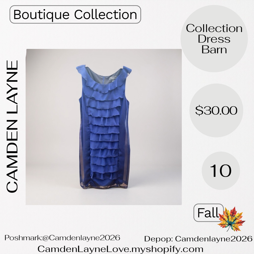 The blue Dress Barn dress from the Iridescent Collection by Camden Layne features a classic sheath silhouette, designed to flatter with its clean lines.