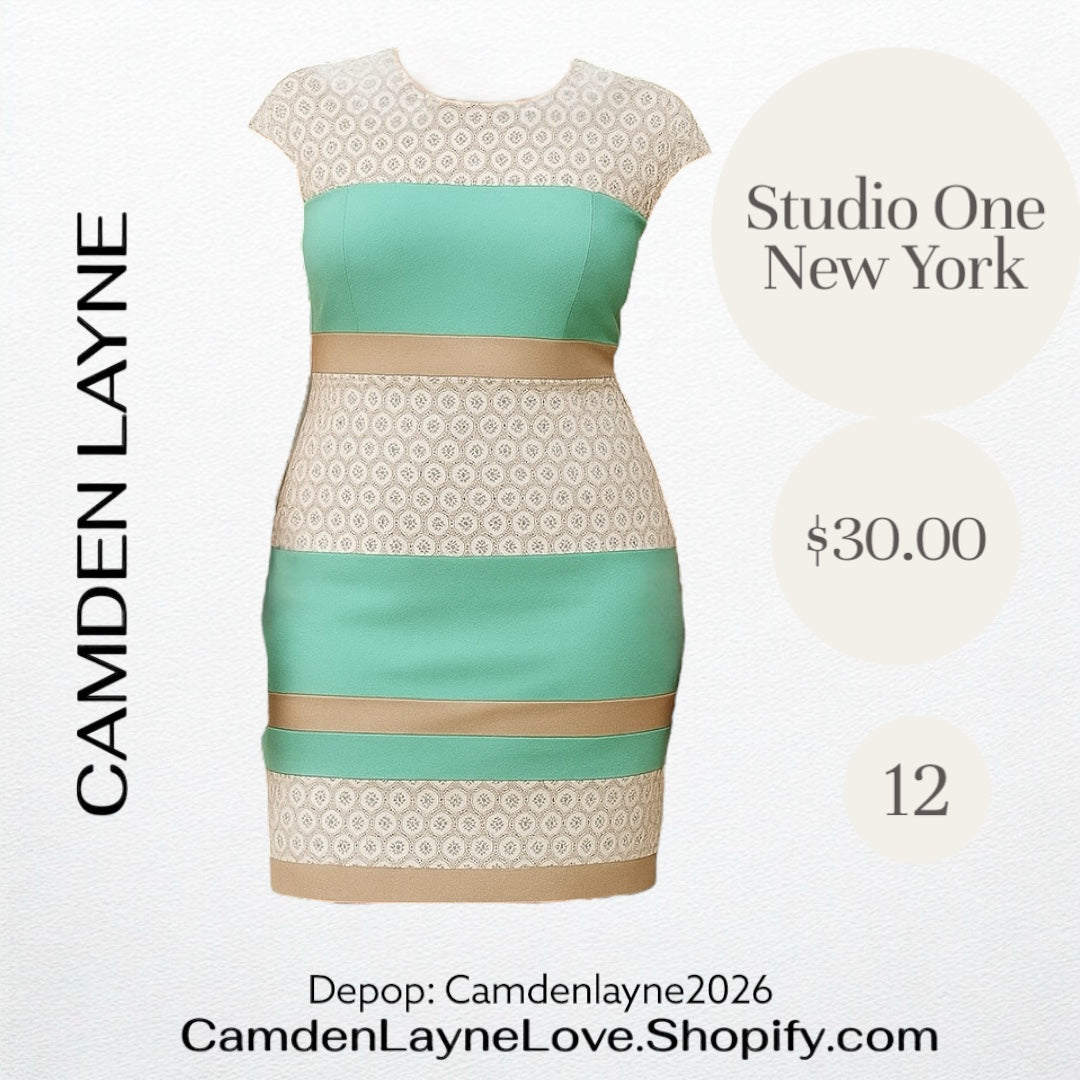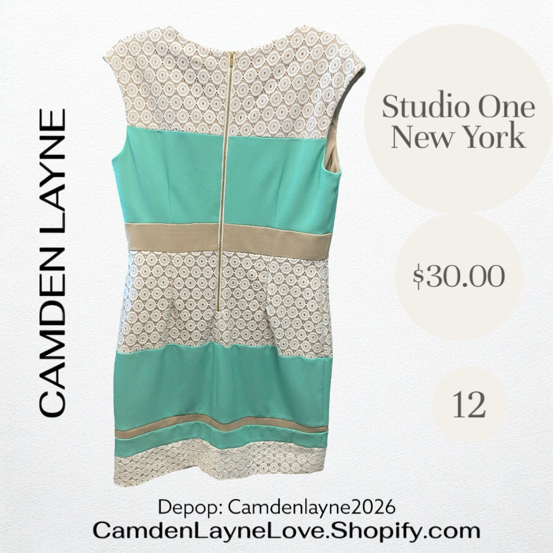 - Material: Based on similar listings for Studio One New York dresses, it's likely made from a polyester blend fabric, possibly with lace or crochet accents for the patterned sections.