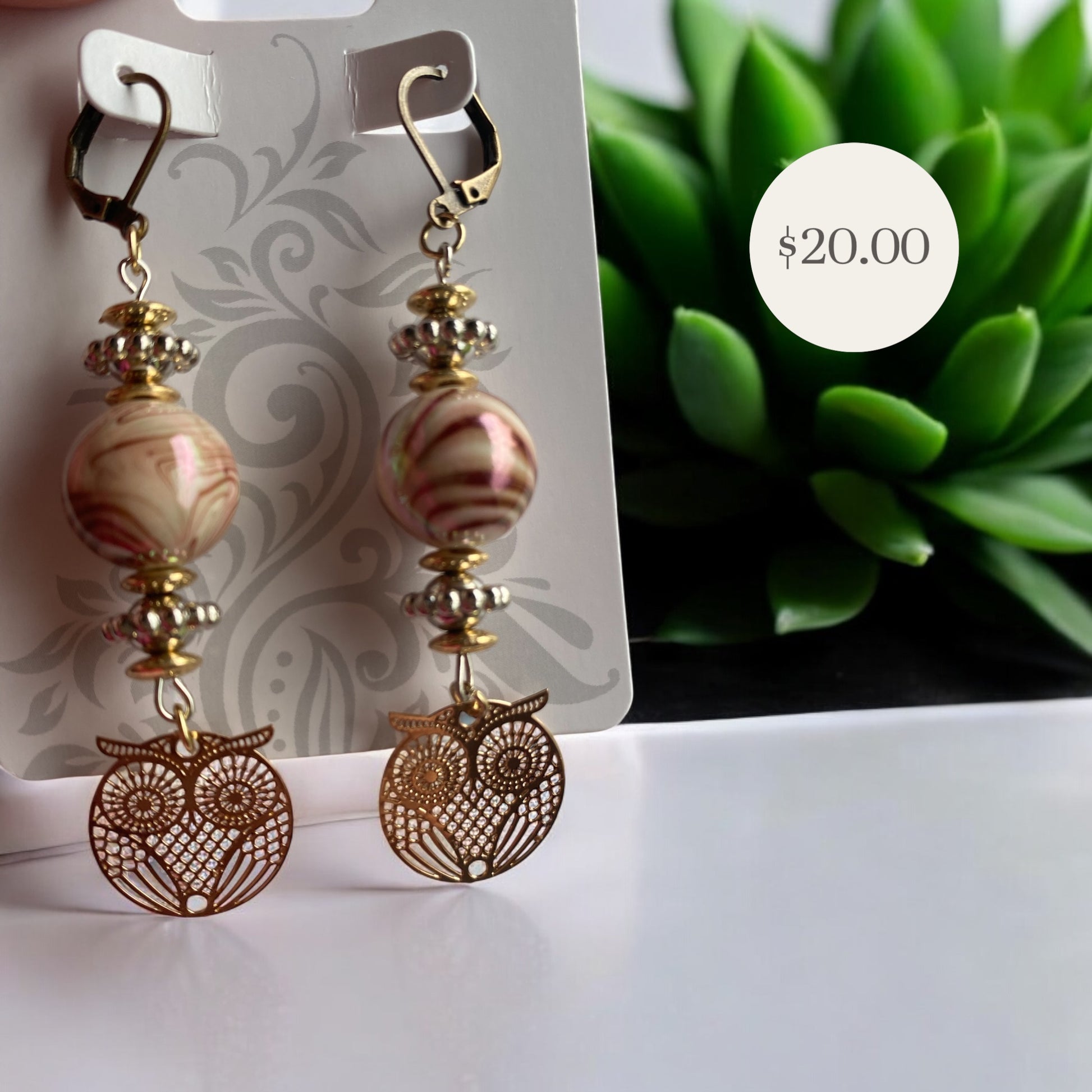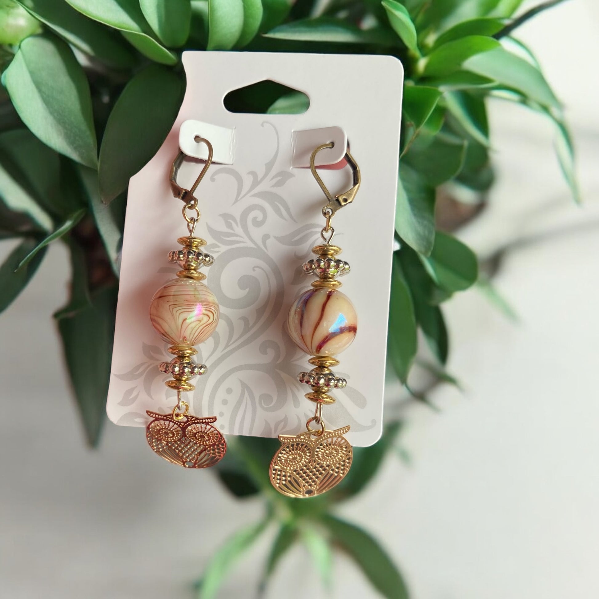 Brown Marble Owl Earrings