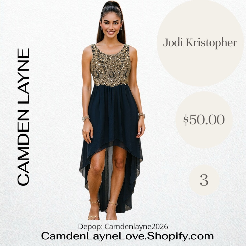 - Overall Look: The dress presents a blend of formal elegance and modern flair, suitable for special occasions or semi-formal events.