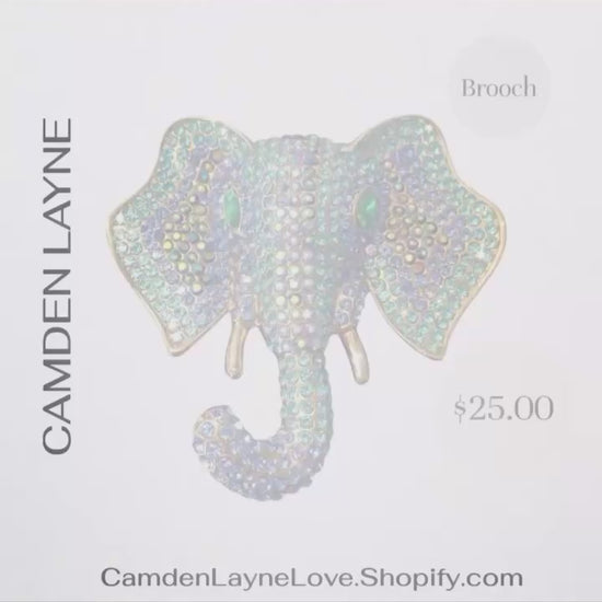 Pink rhinestone elephant brooch. 2 1/4 inches long by 2 inches wide.