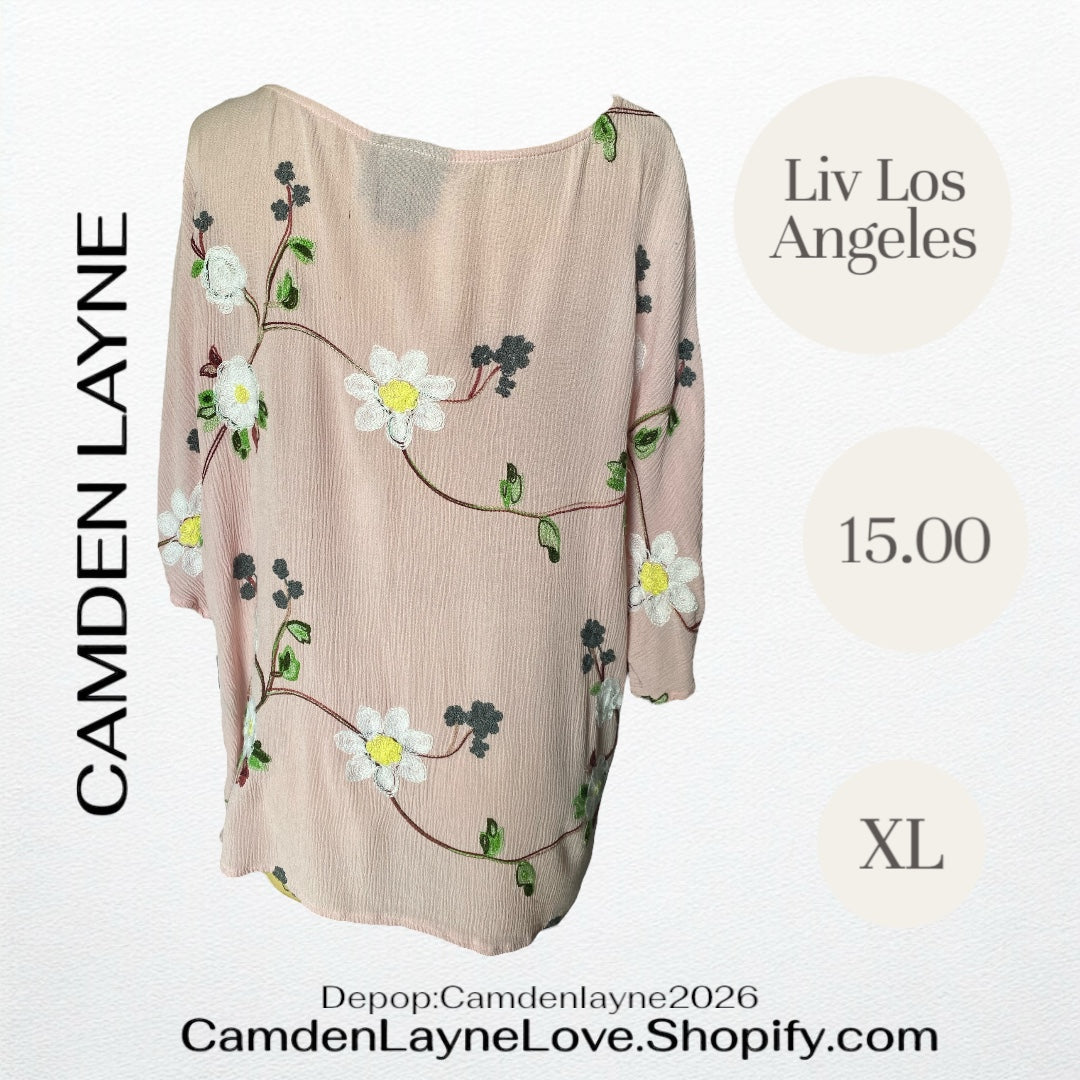 - Brand and Style: It's a "Liv Los Angeles" blouse, known for its embroidered and often bohemian-inspired designs.