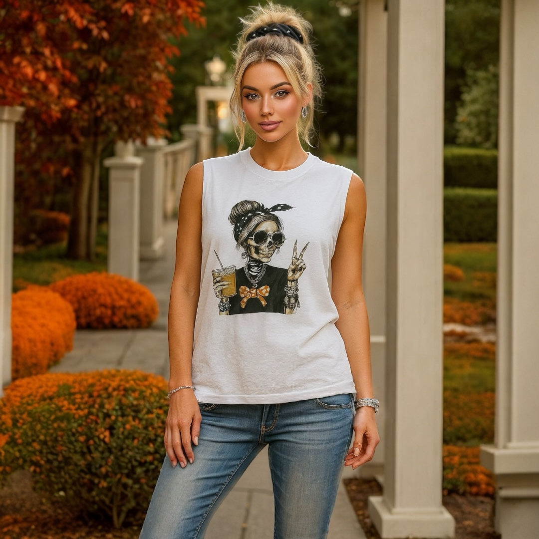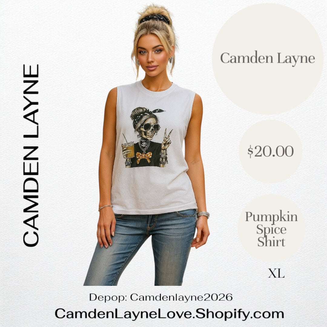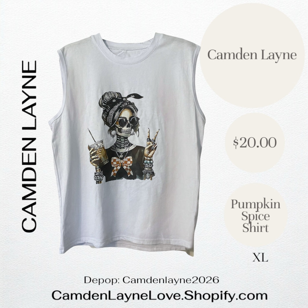 Pumpkin Spice Skeleton sleeveless off -Shirt.