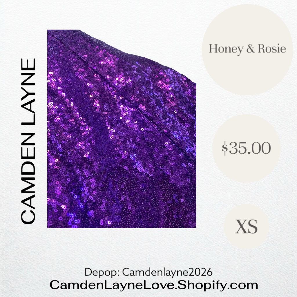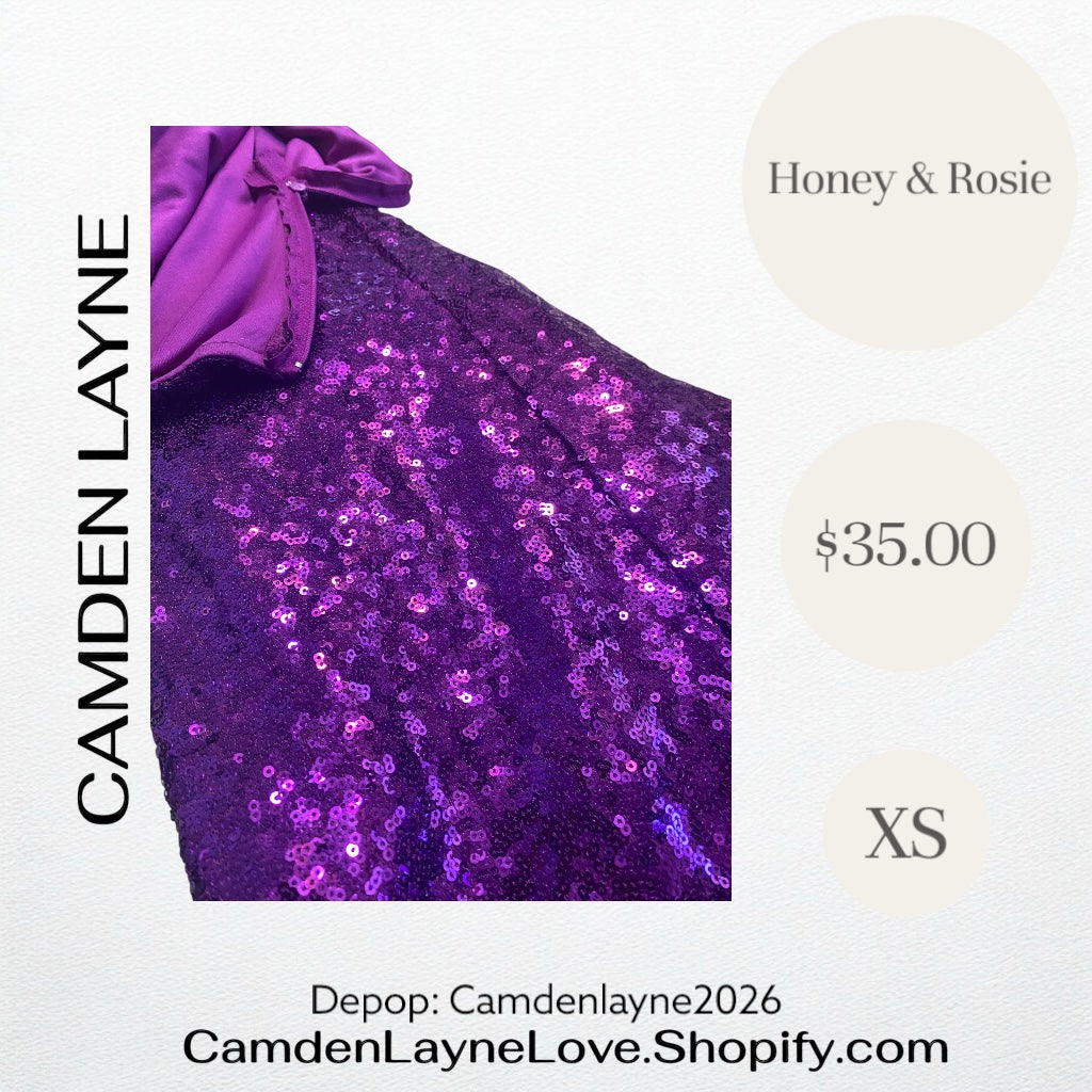 - Color & Material: Vibrant purple, covered entirely in shimmering sequins for a glamorous effect.
