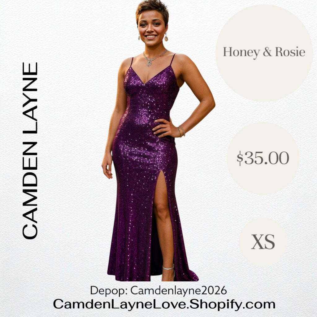 stunning long purple sequin dress, ideal for formal events like prom, evening galas, or special occasions.