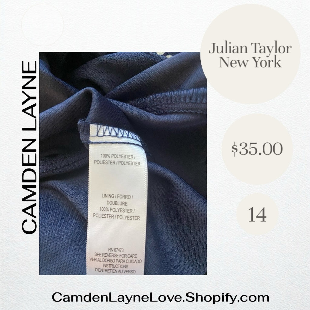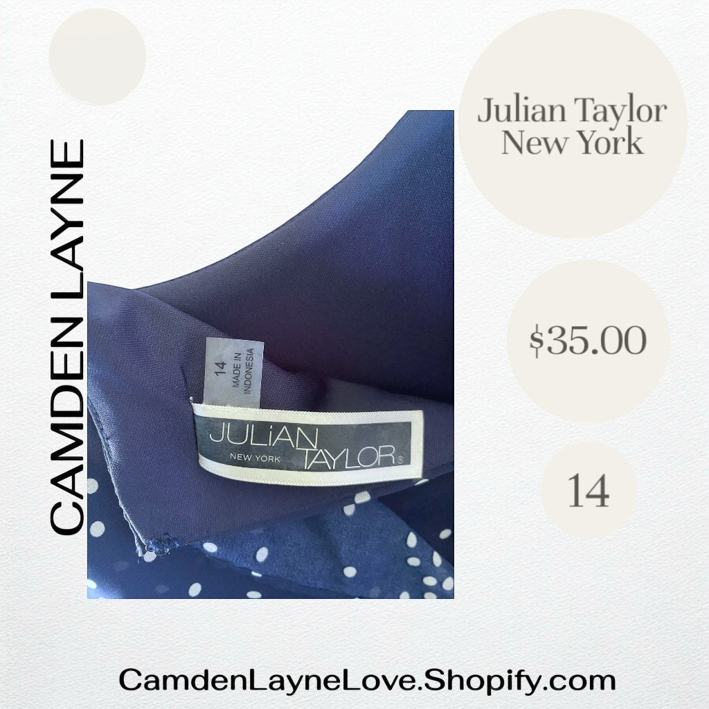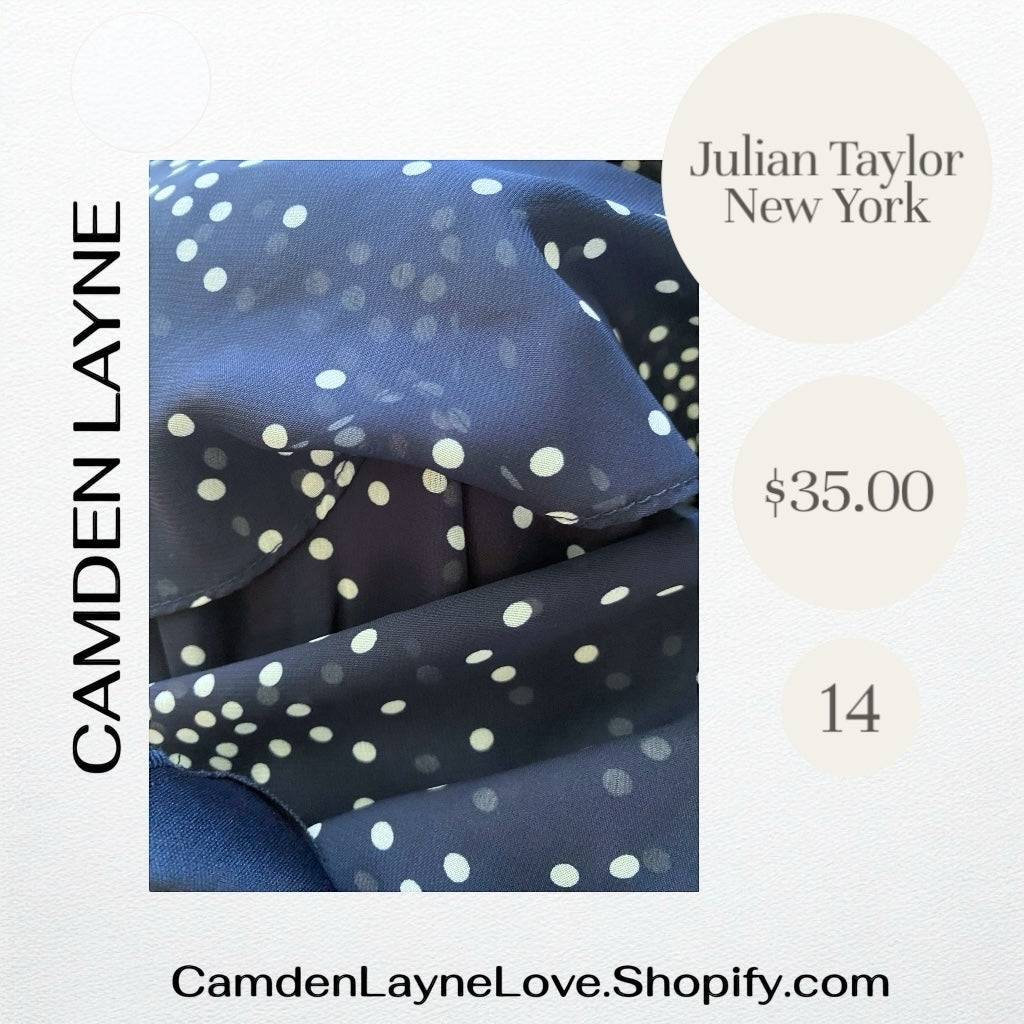 - Fabric & Details: While the exact fabric isn't specified in the image, similar Julian Taylor dresses with polka dots often use comfortable materials like nylon or polyester, with features like side tie sashes or illusion yokes found in comparable styles, though these specific details aren't clearly visible in this image.