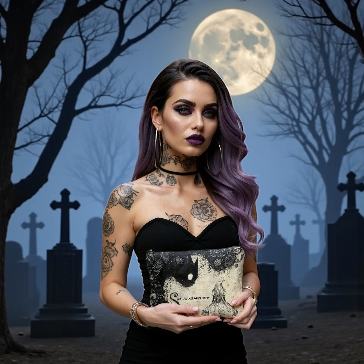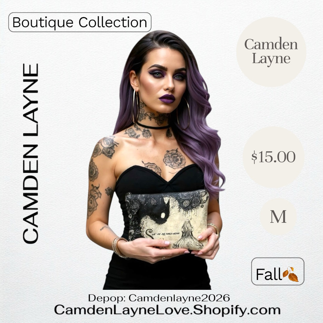 Camden Layne Boutique Collection Bag, featuring a dark fairy tale design inspired by Alice in Wonderland.